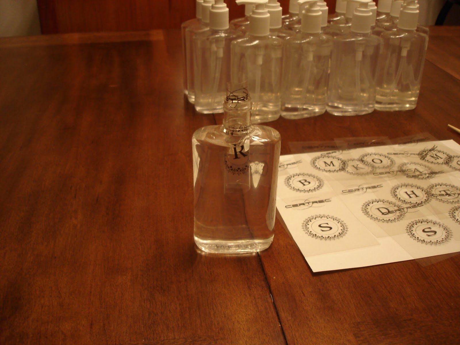 How cute are THESE hand sanitizers?! Awfully cute I guess, my husband asked me to make 19 of them for co-workers. I also made a couple for Emily’s Discovery School teachers. I did end up making my own temples so that I could personalize the labels with teacher’s name and monogram initials and company logo for my husband’s co-workers.