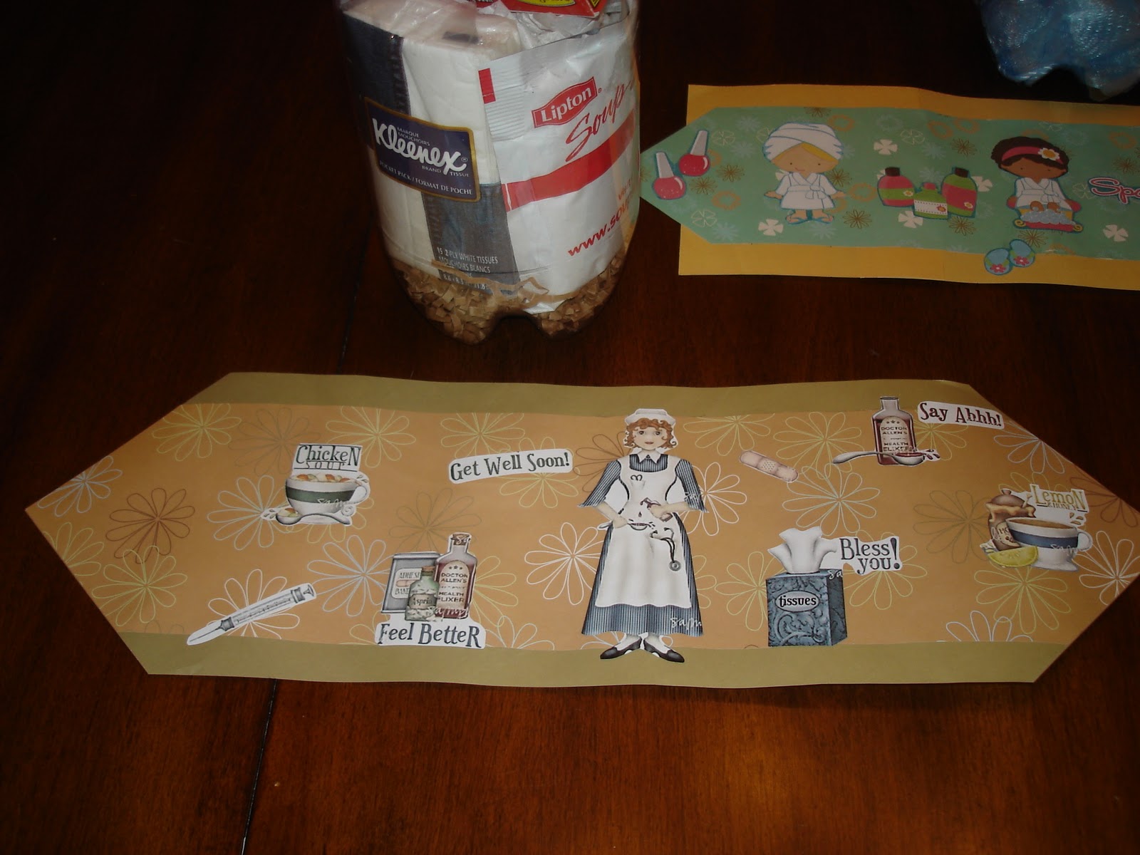 The other is a “Get Well Soon Kit” with Emergen-C vitamin packets, Tylenol, cough drops, Kleenex tissue packets and Lipton soup packets.